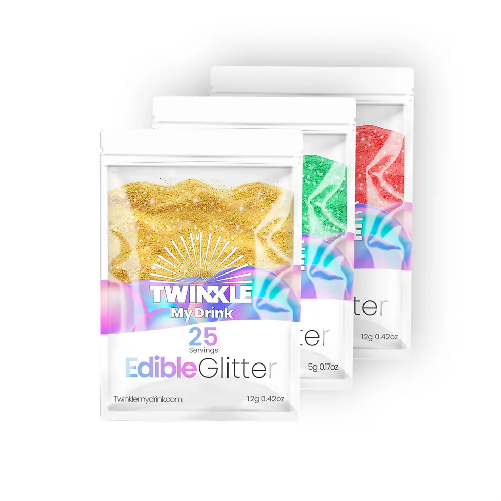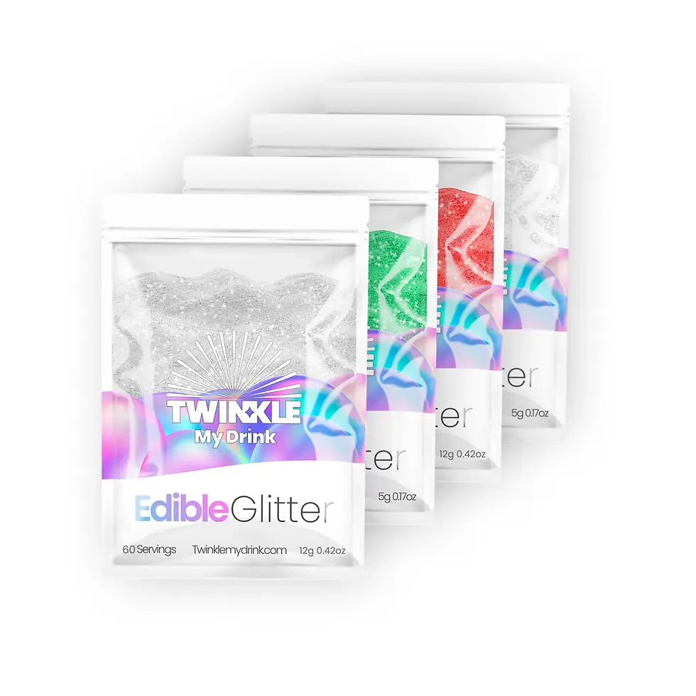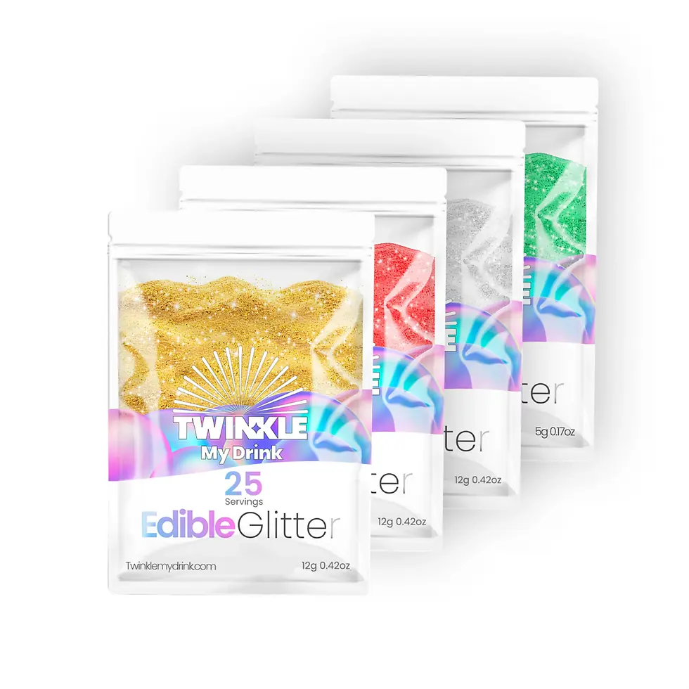 Edible glitter adds instant sparkle to cocktails, mocktails, champagne, or even water — safe, tasteless, and totally dazzling.